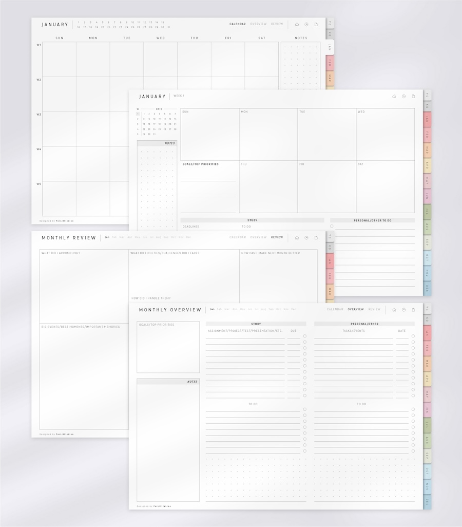 This planner is an all-in-one digital planner designed for students, and comes with specialized study templates like exam trackers and assignment trackers. It's undated, which makes it relevant for you no matter which year it is!