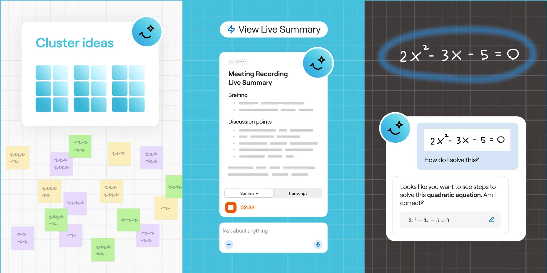 - Extract key themes and insights from collaborative sticky note brainstorming sessions