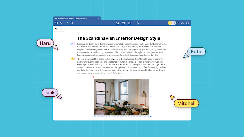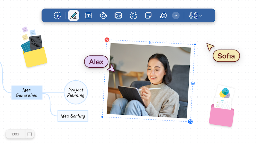 Whether you're brainstorming with colleagues or working through a project with classmates, the new Goodnotes makes collaboration seamless. See each other's contributions appear in real-time across all Notebooks, Whiteboards, and Text Documents. Leave comments, see where teammates are working, and watch ideas develop together naturally.